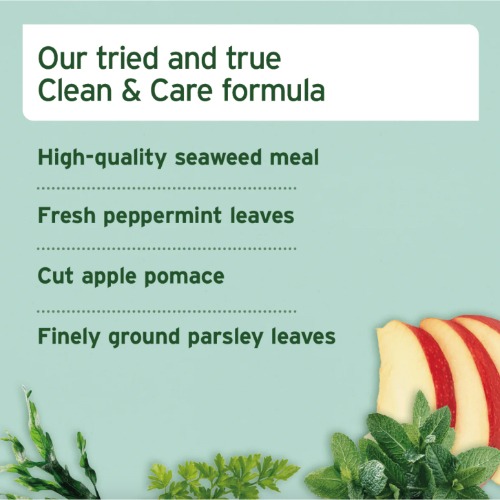 Koostis: 78,0% kana, 3,0% Uus-Meremaa roheliste huultega rannakarpide pulber, rannakarbihelbed (Mytilus edulis) MSC-sertifitseeritud vesiviljelusest, 2,0% kibuvitsa koore peened osad (0,22% C-vitamiin), 2,0% kuradiküüne pulber, 1,5% merekala kollageenipulber, 1,5% oomega-3 kalajahu, kurkum, 0,3% metüülsulfonüülmetaan (MSM), must pipar. Analüütiline koostis: Toorvalk 30,7%, toorrasv 38,0%, toorkiud 3,4%, toortuhk 3,6%, jääkniiskus 2,5%.